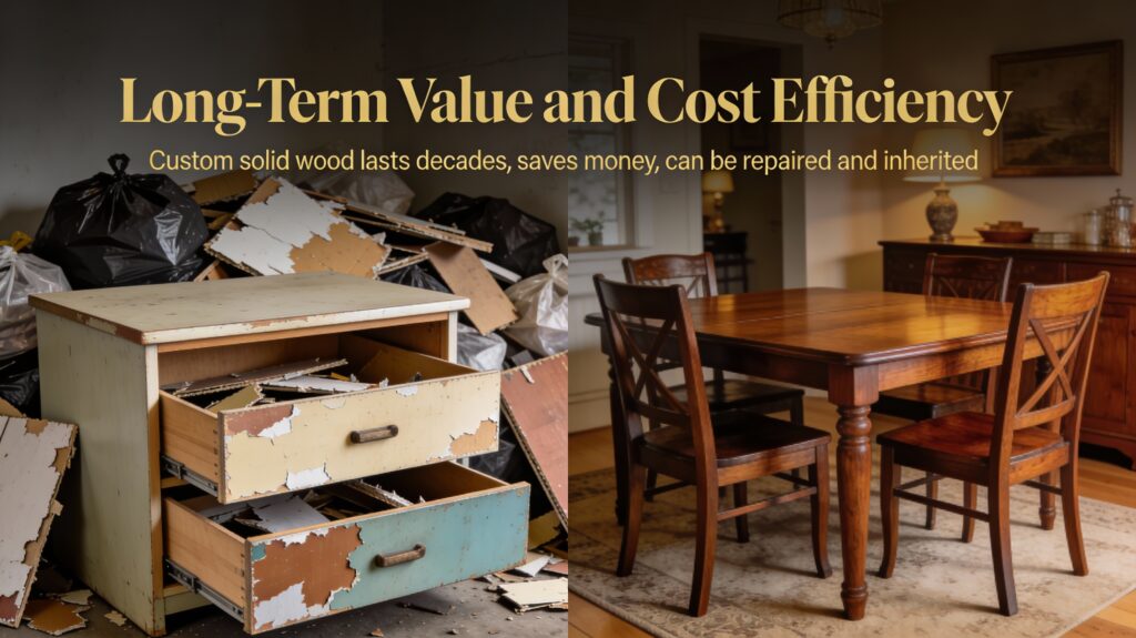 By choosing custom wood furniture, you contribute to less waste, fewer replacements, and responsible sourcing — all while enjoying timeless durability and elegance.