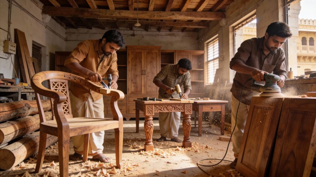 At Keshav Craft, our skilled craftsmen take pride in every detail — blending traditional joinery with modern tools for precision and perfection.