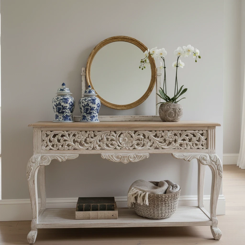 The console table, often long and narrow, is a remarkably versatile and stylish piece of furniture designed to enhance functionality and aesthetics in various parts of your home. From creating a welcoming entryway to adding a touch of sophistication behind a sofa, a console table is a master of understated elegance and practical utility, making it a must-have in contemporary Indian homes.