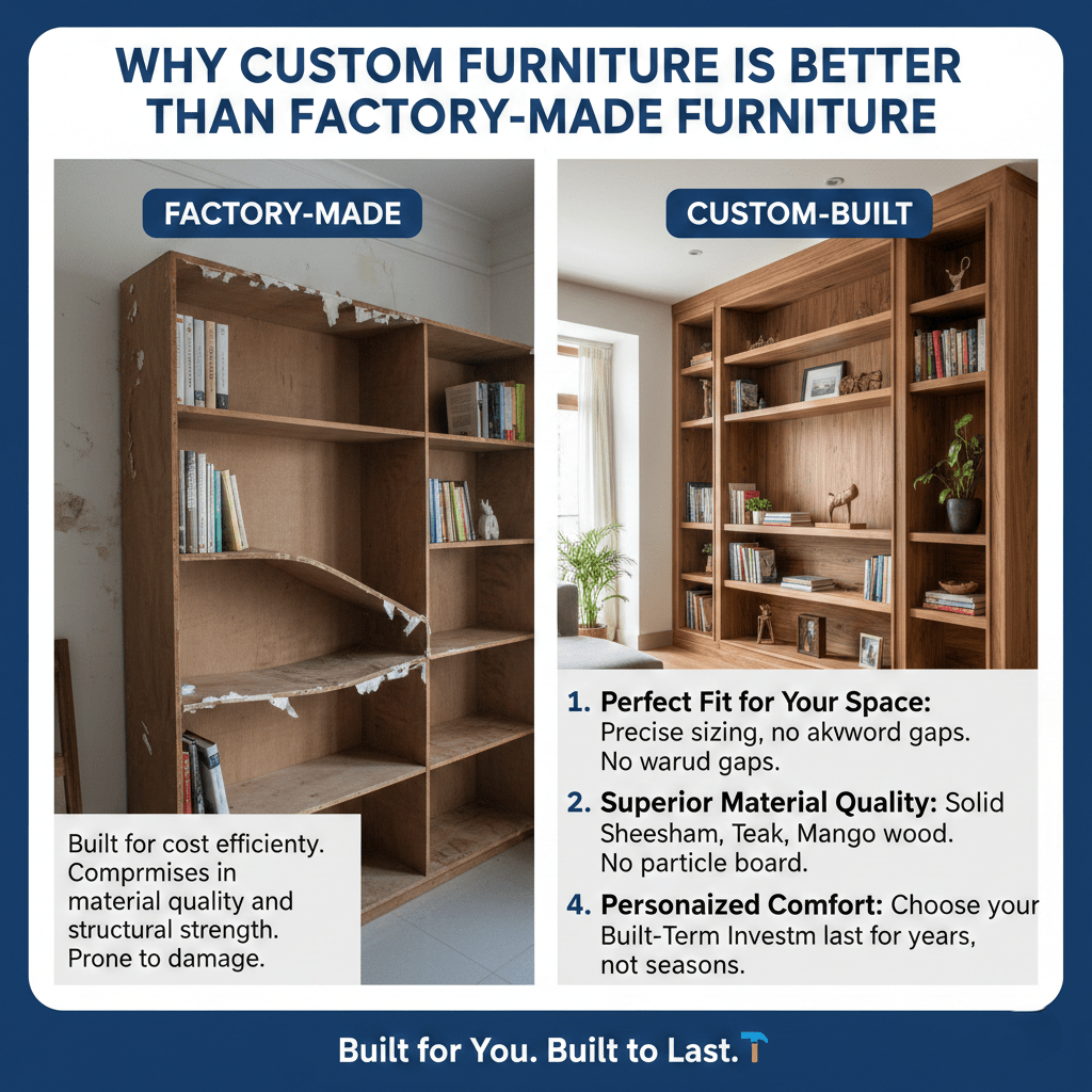 If you are searching for custom furniture in India that offers both durability and personalization, our workshop delivers craftsmanship that mass-produced furniture simply cannot match.