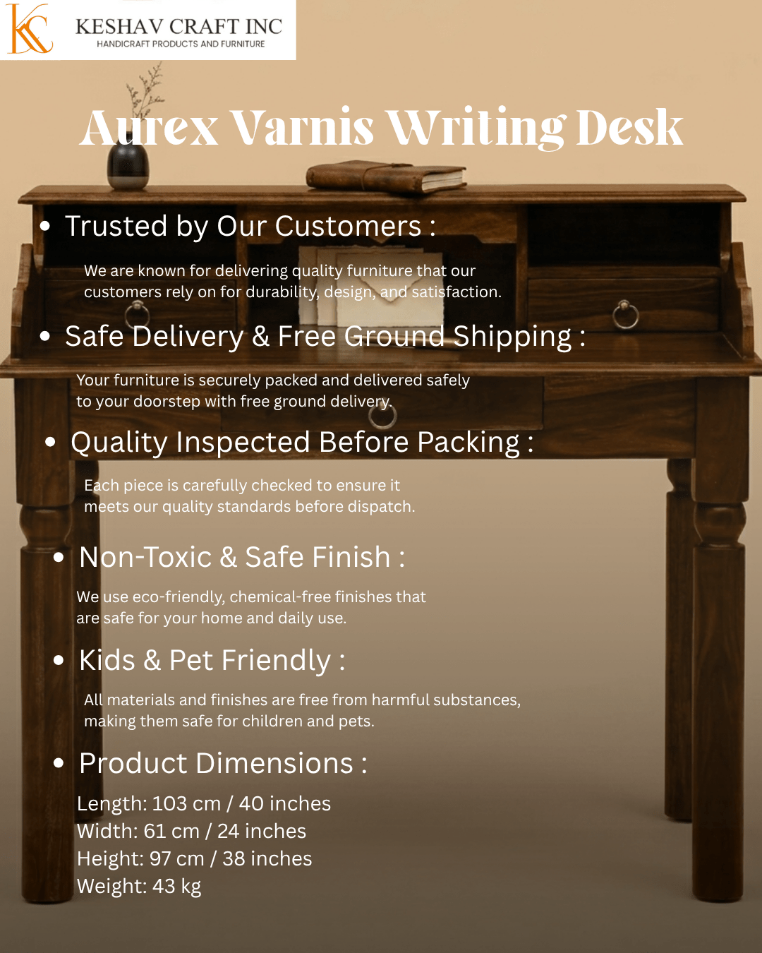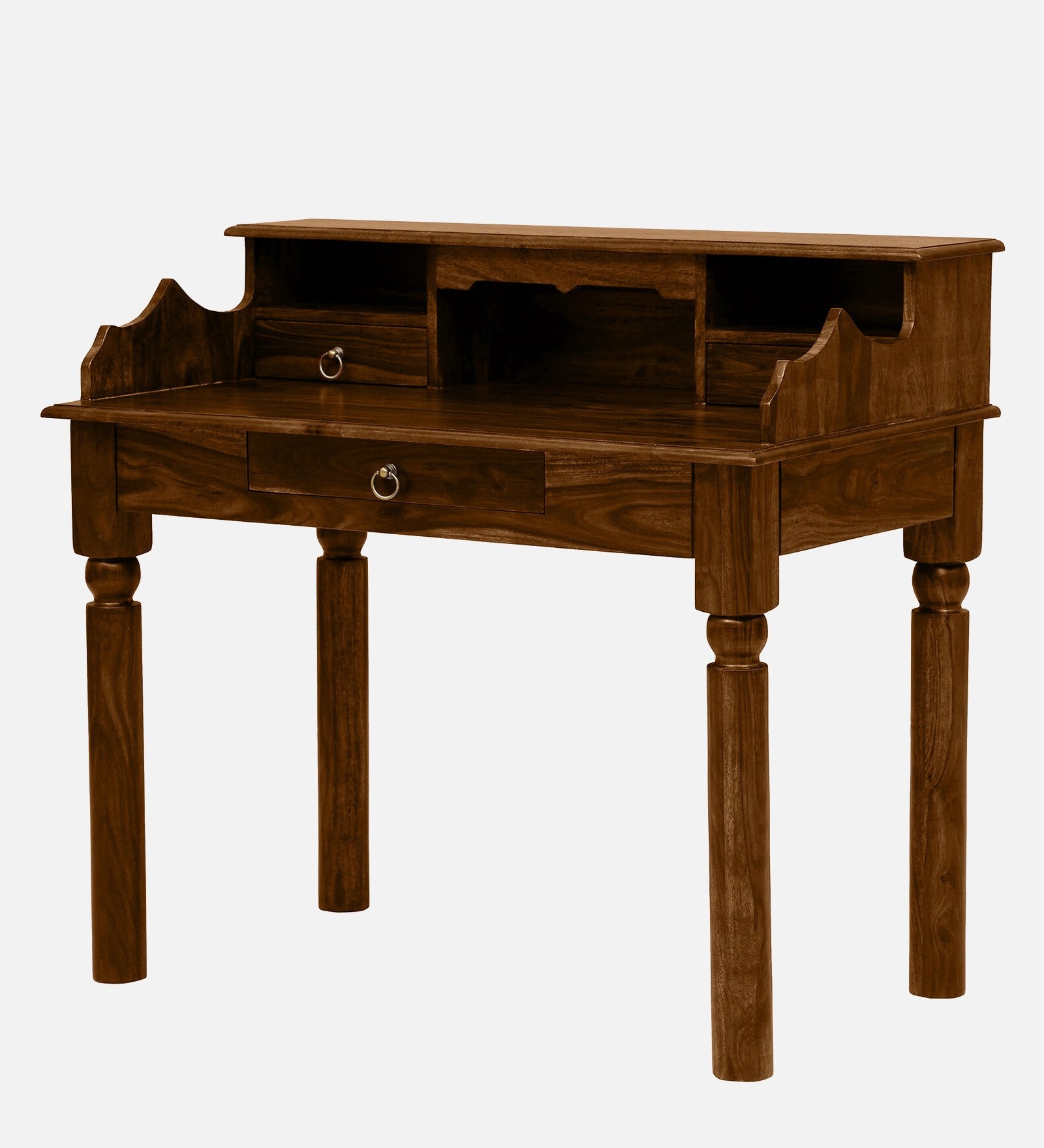 A premium Sheesham wood writing desk with smart storage and a warm honey oak finish, designed for modern and organized workspaces.
