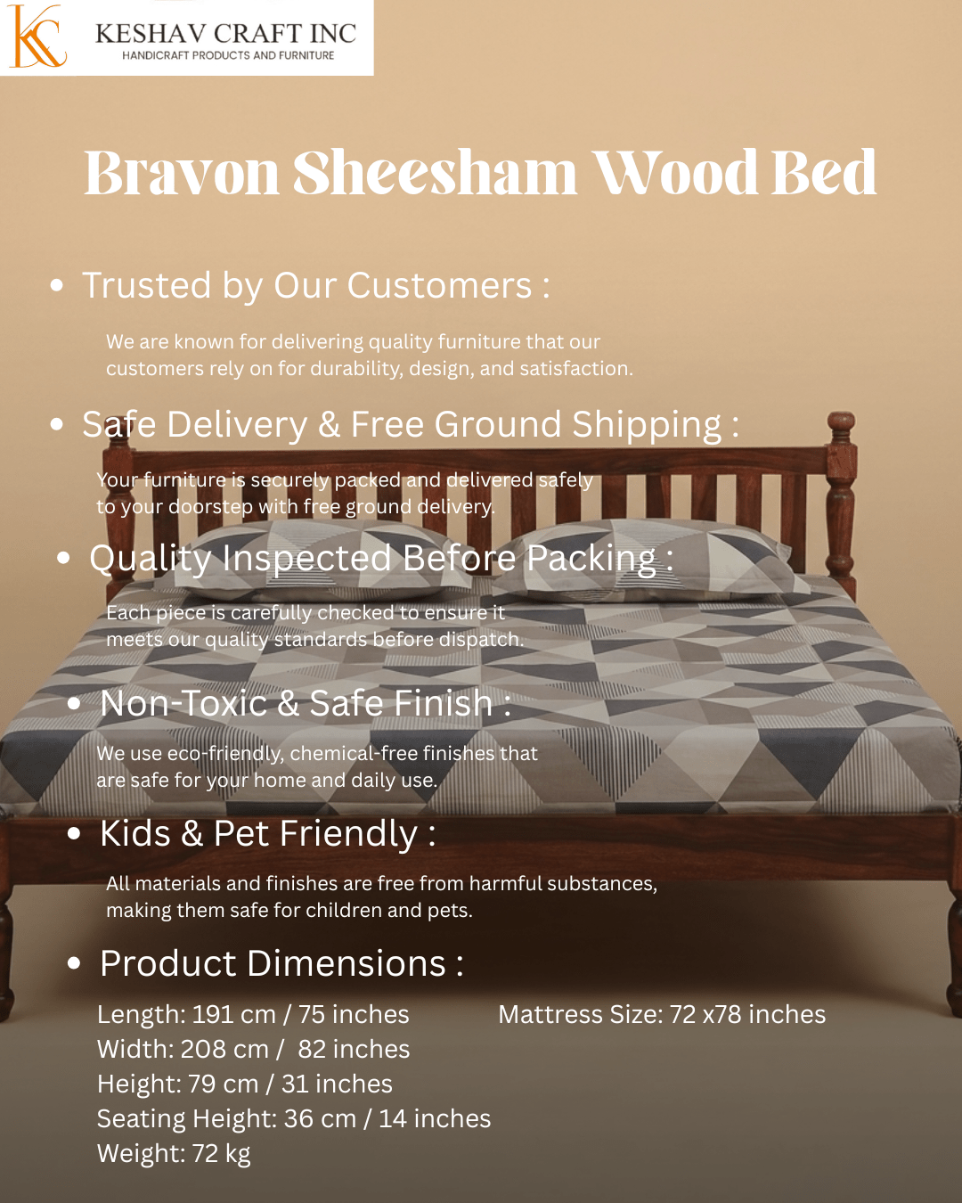 • Crafted from solid Sheesham wood for durability