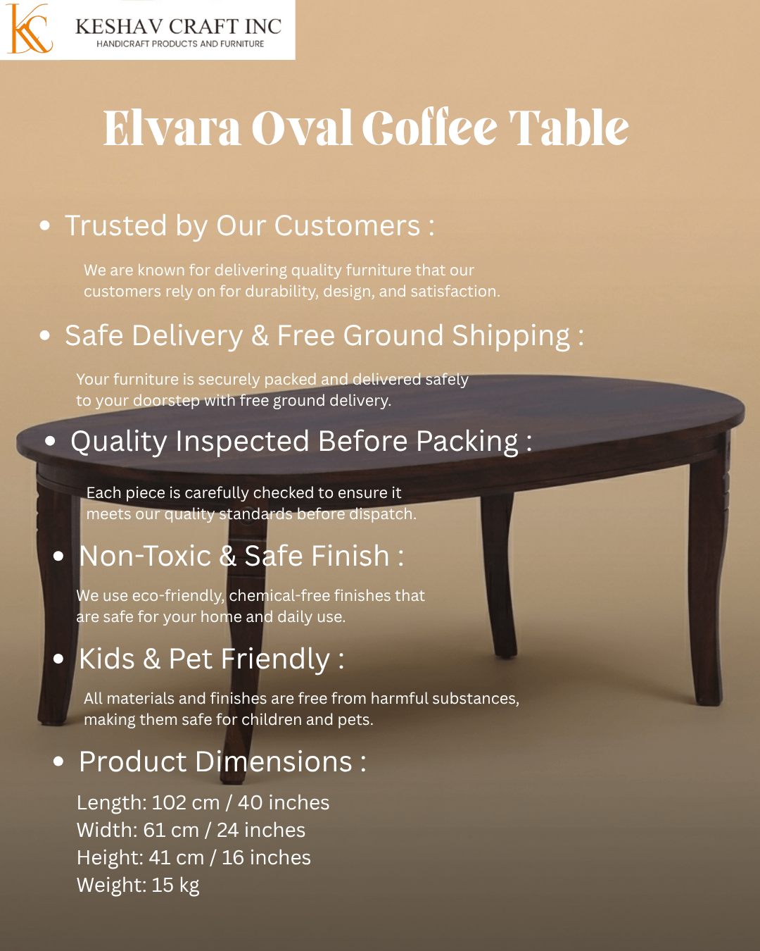 oval coffee table, modern coffee table, wooden coffee table, minimalist table, living room table, designer coffee table, contemporary furniture, premium furniture India, solid wood table, center table, Keshav Craft Inc, oval center table