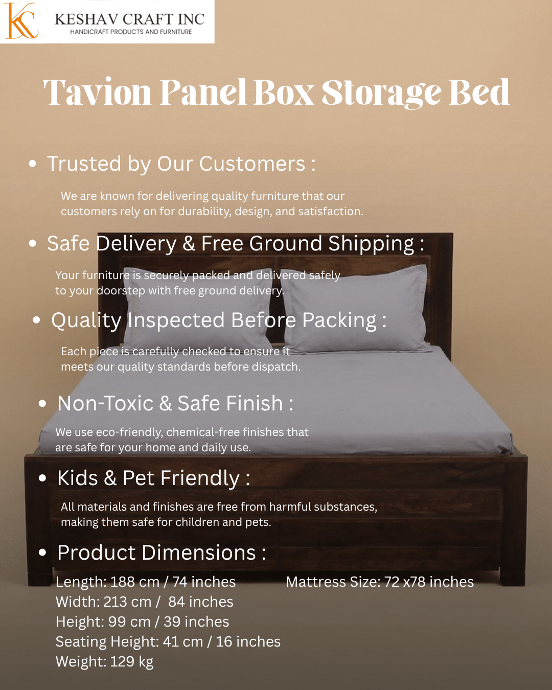 The Tavion Panel Storage Bed is a refined blend of simplicity and strength, crafted for modern living. Built from high-quality solid wood, it features a smooth panel-style headboard and footboard that highlight the natural richness of the wood grain.