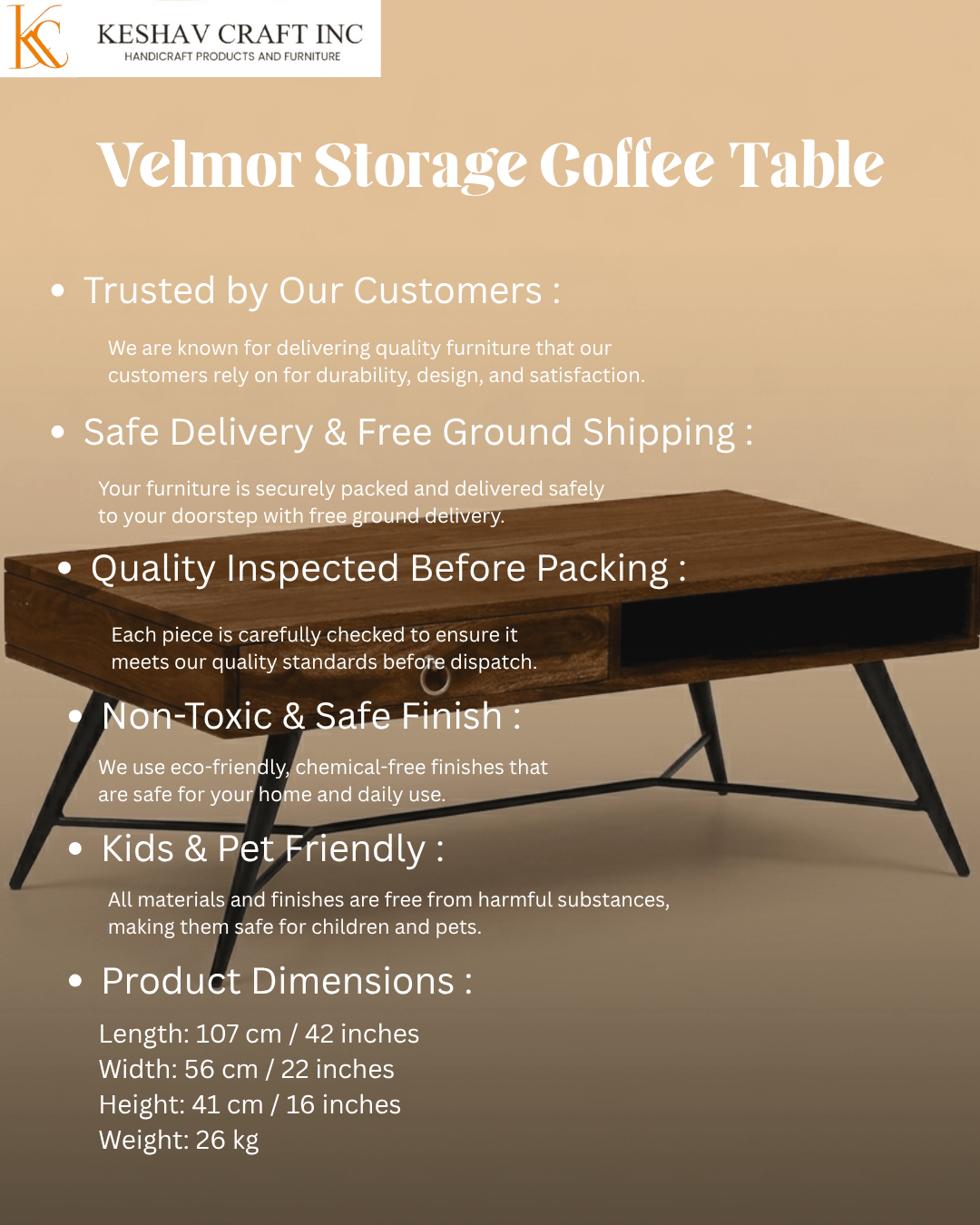 - Product Name: Velmor Storage Coffee Table