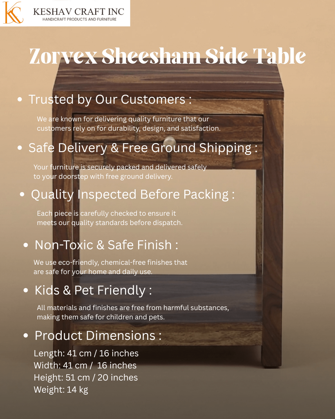 - Solid Sheesham wood construction for durability